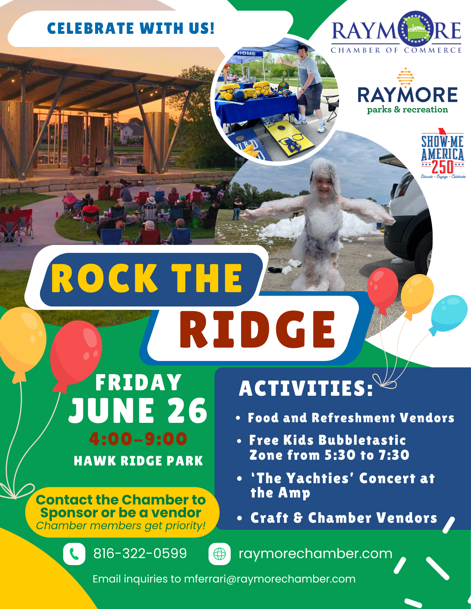 To Sponsor or Participate in the Chamber’s 2026 Special Events (Shown Above), contact Melisa Ferrari, Executive Director- mferrari@raymorechamber.com or leave a message at our office by calling 816-322-0599