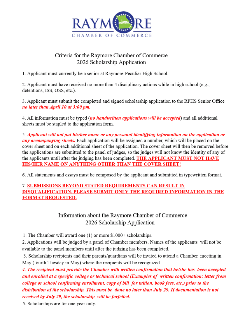 In 2026 we are giving away $3,000 in scholarships. See below for the Scholarship Criteria. Applications are due each year in early April (April 10, 2026). They may be submitted to the Counseling Office at Ray-Pec High School.